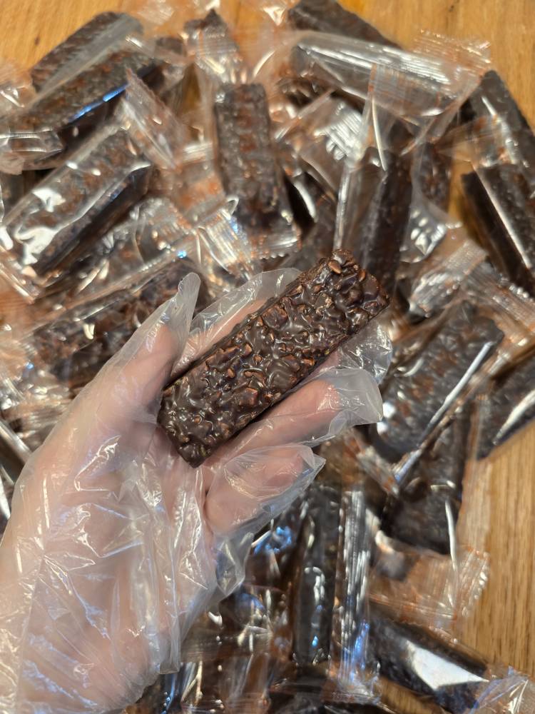 بر پایه جوانه گندم و شیره انگور و 4 مغز پسته، بادام درختی، فندوق و گردو و مخلوط شکلات تلخ و شیرین