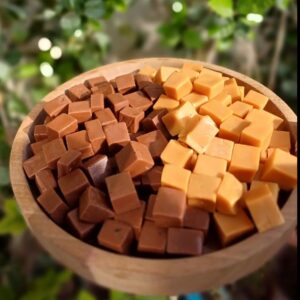 تولید شده از شکر قهوه ای و قهوه اسپرسو ؛ دارای بافت نرم؛ نگهداری در ظرف در بسته