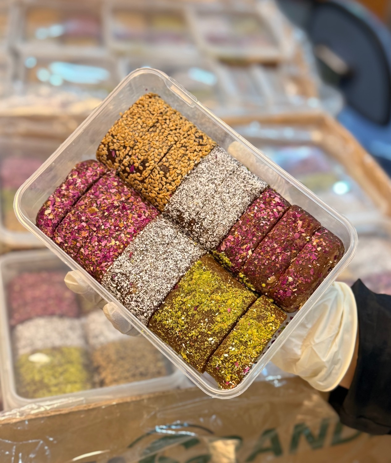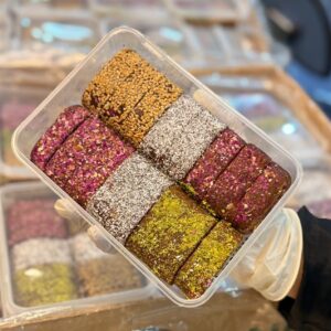 فاقد شکر / خمیر خرما ، زنجبیل ، دارچین ، بادام زمینی ، کنجد و پسته