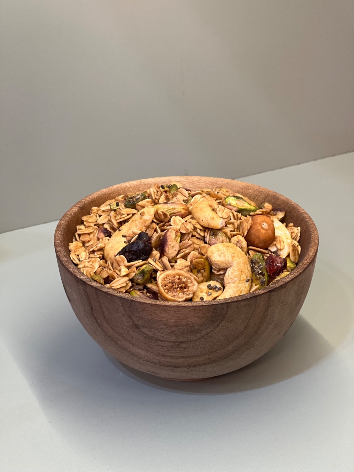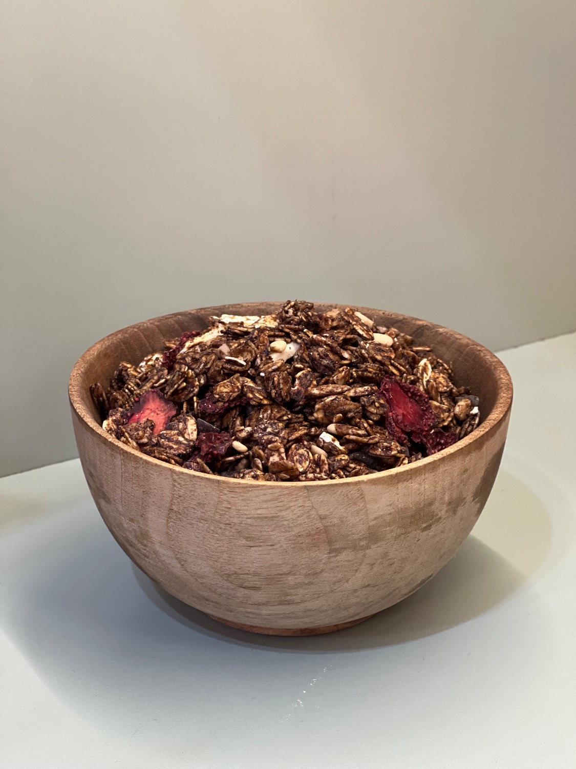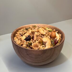 ترکیبات: توت فرنگی خشک اسلایس شده ، کرن بری ، مغز تخمه کدو و آفتاب گردان ، کنجد
